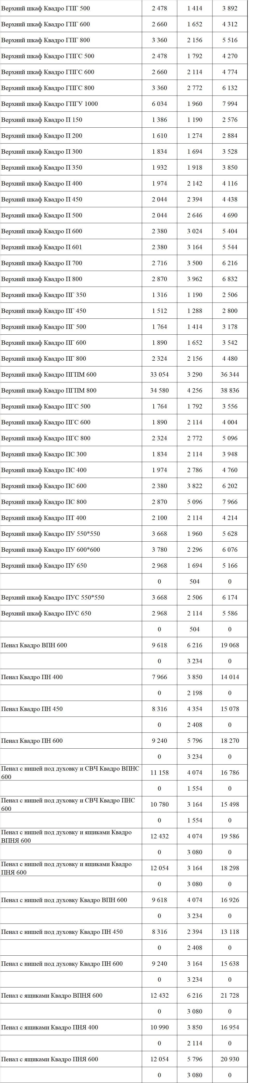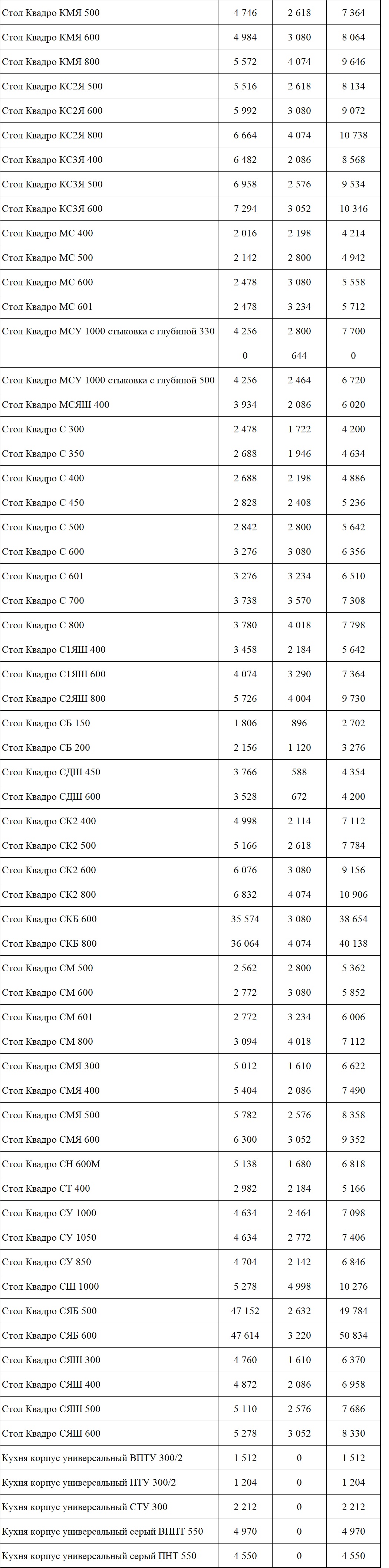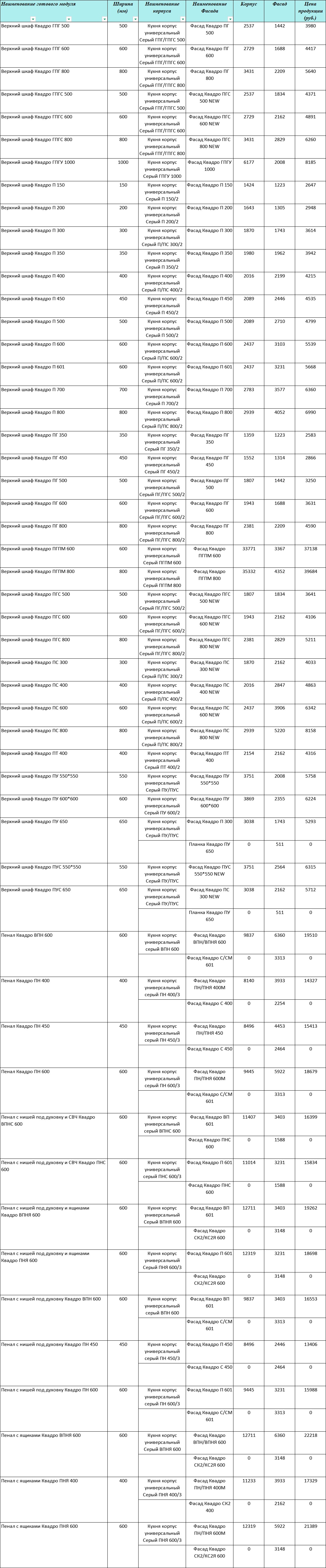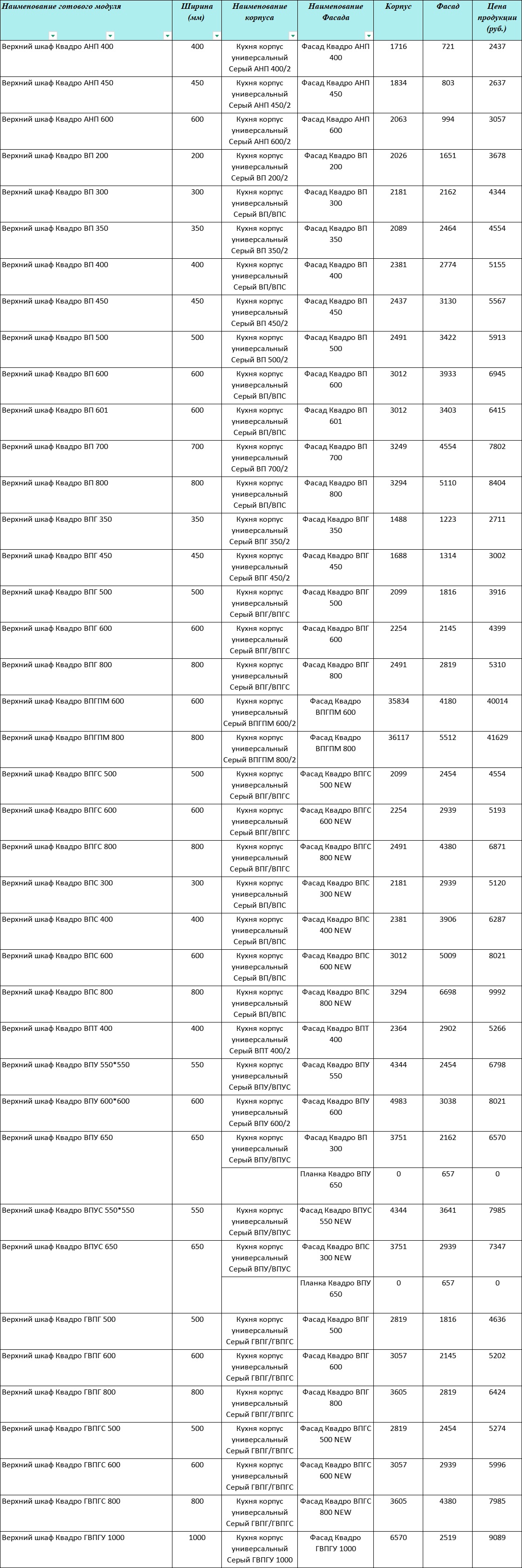 - Стоимость каждого модуля указана в таблице ниже, схематическое изображение каждого модуля - в описании категории на этой странице ниже